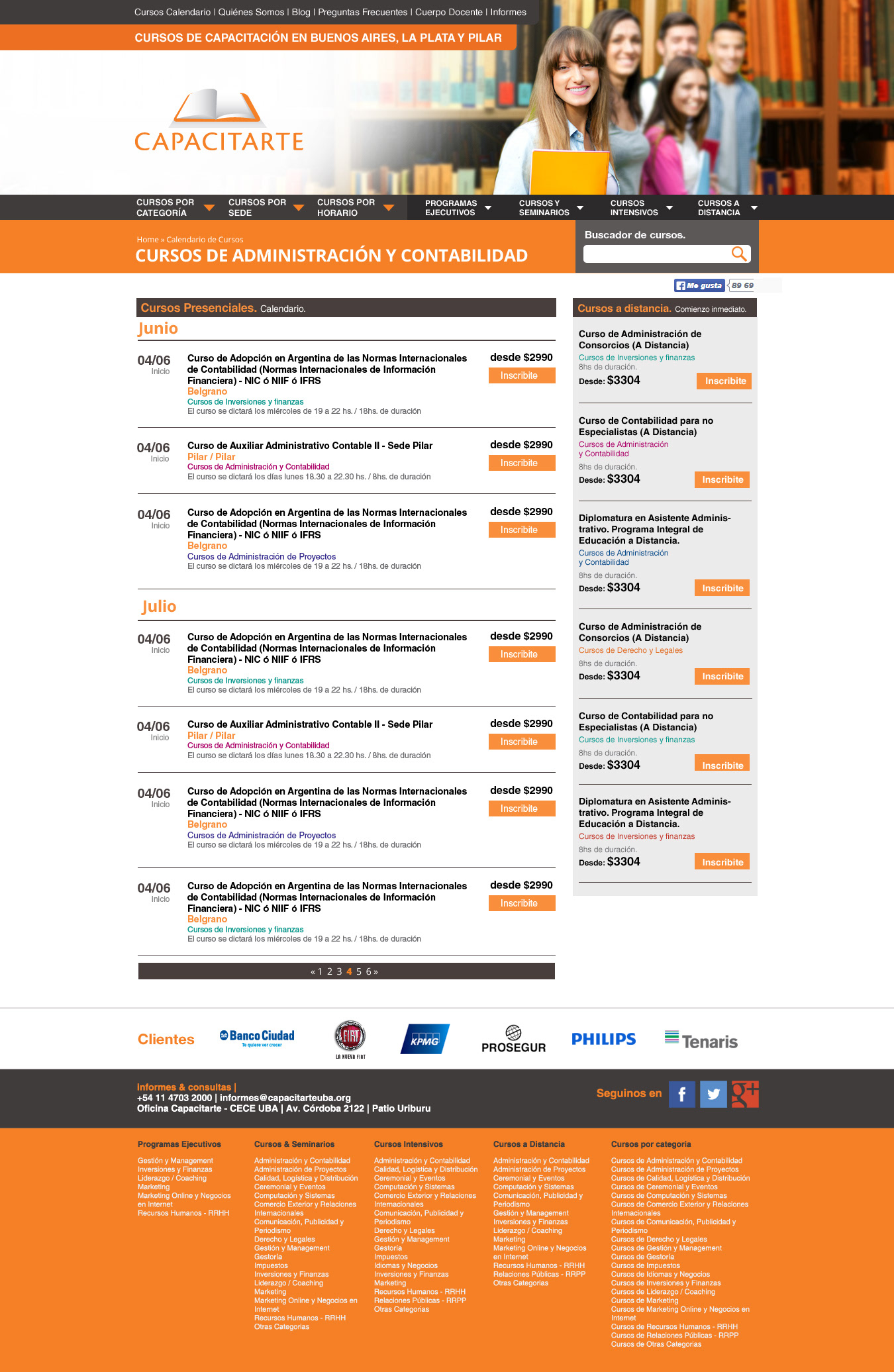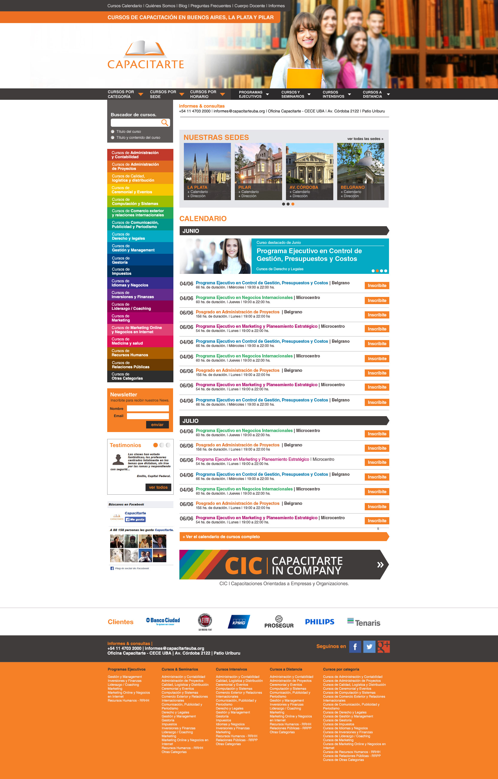 Diseño de portal de cursos y de newsletters para la Organización Capacitarte. Pertenece a la comunidad de la Universidad de Buenos Aires, y dicta cursos de capacitación en diferentes áreas y en diferentes sedes.