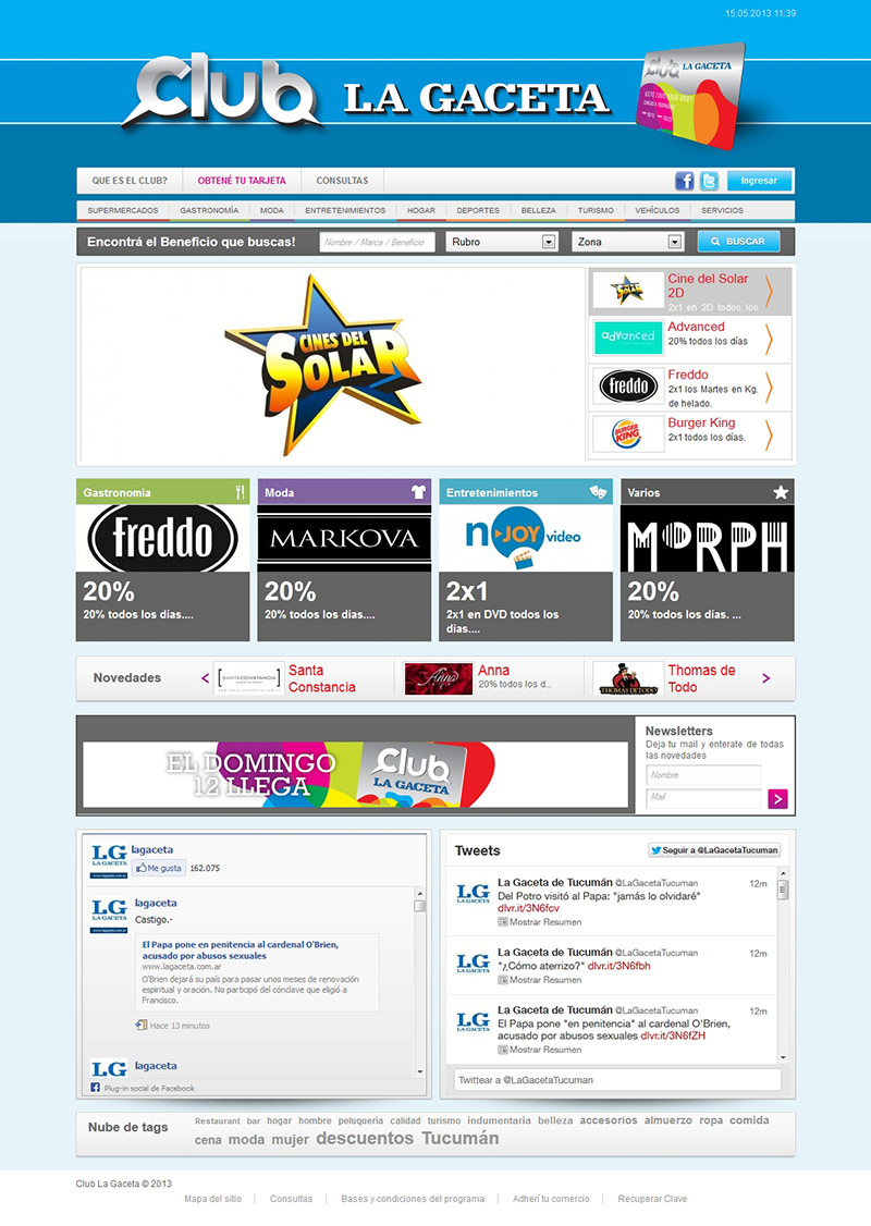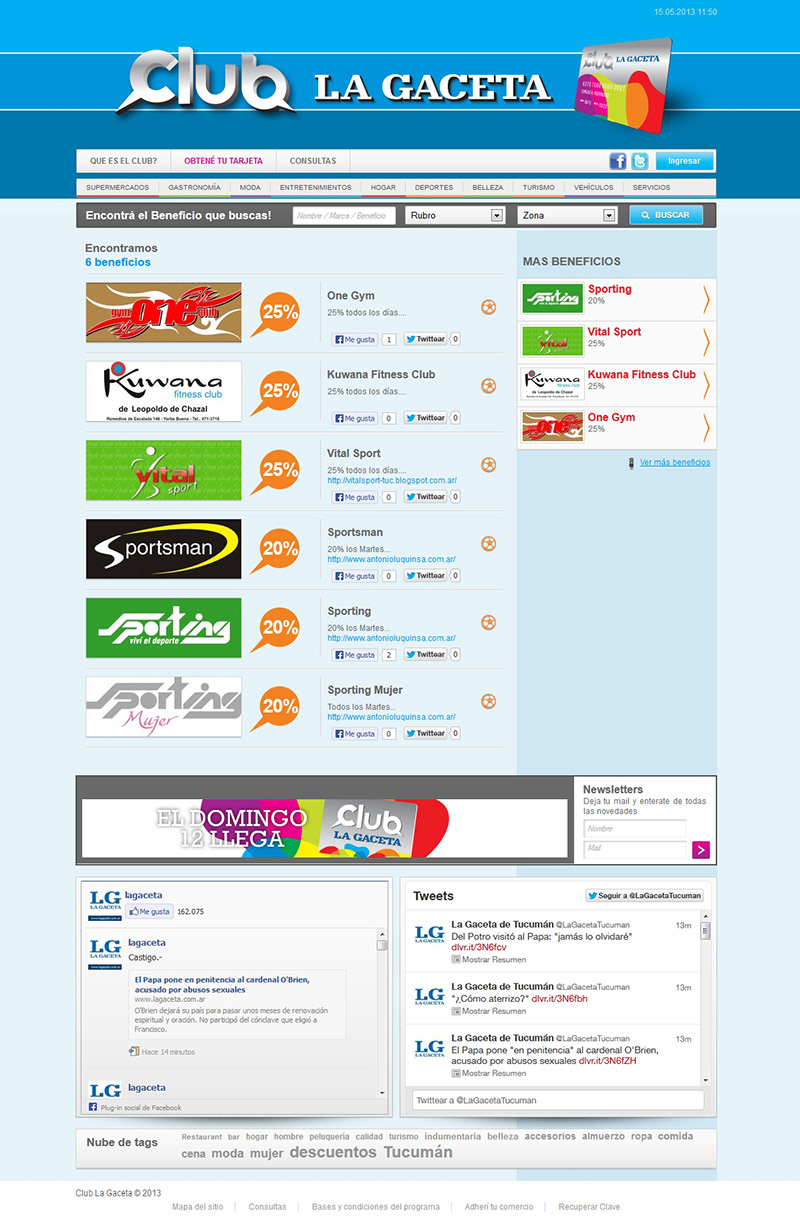 Ajustes de diseño + maquetación (wordpress) del sitio de beneficios de La Gaceta de Tucumán.