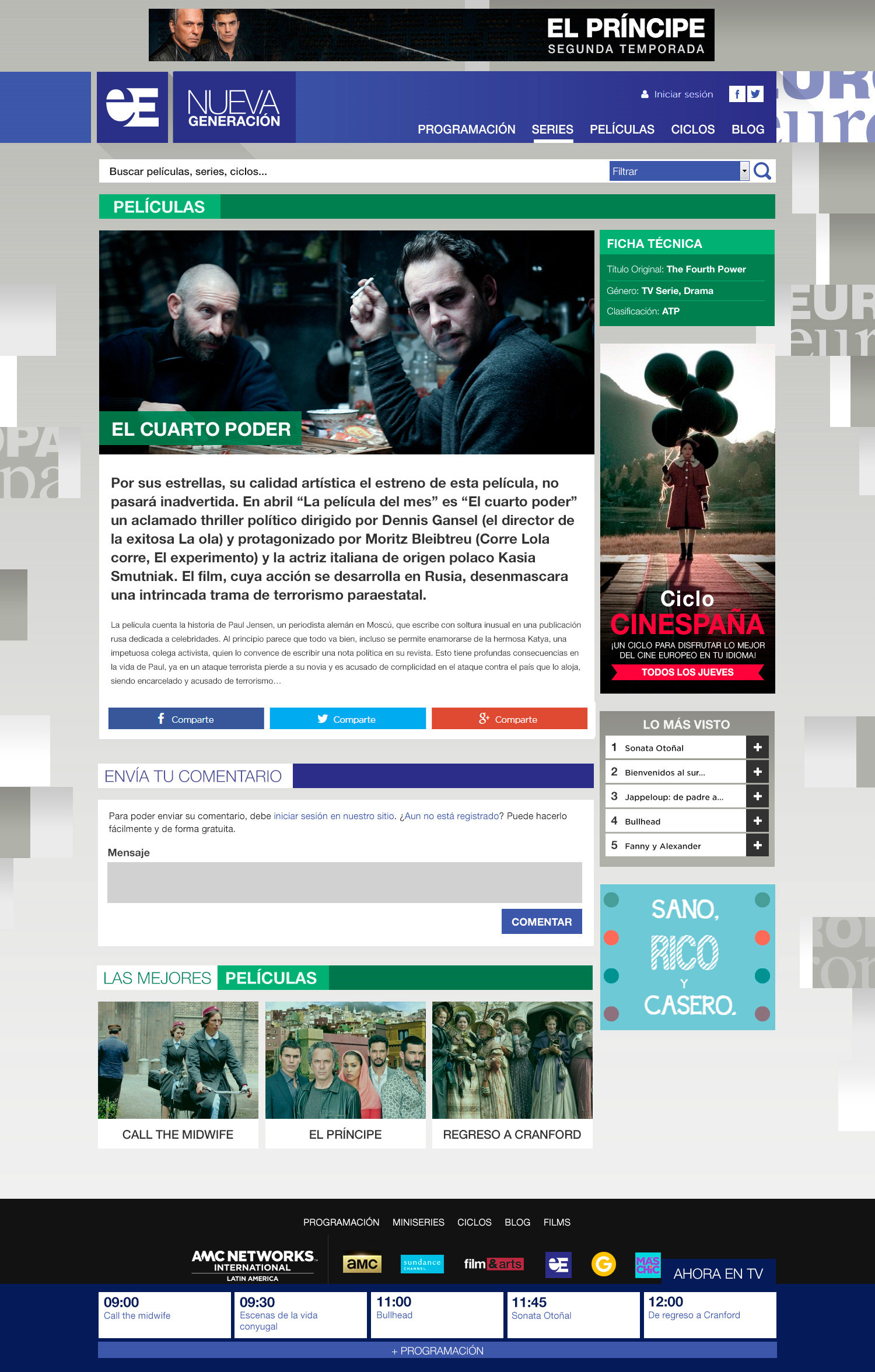 Canal de películas y series europeas de TV por Cable, perteneciente a AMC Networks. Rediseño 2016 del sitio web con grilla de programación. Diseño de piezas como: portadas y posteos para redes sociales / banners promocionales / etc…
